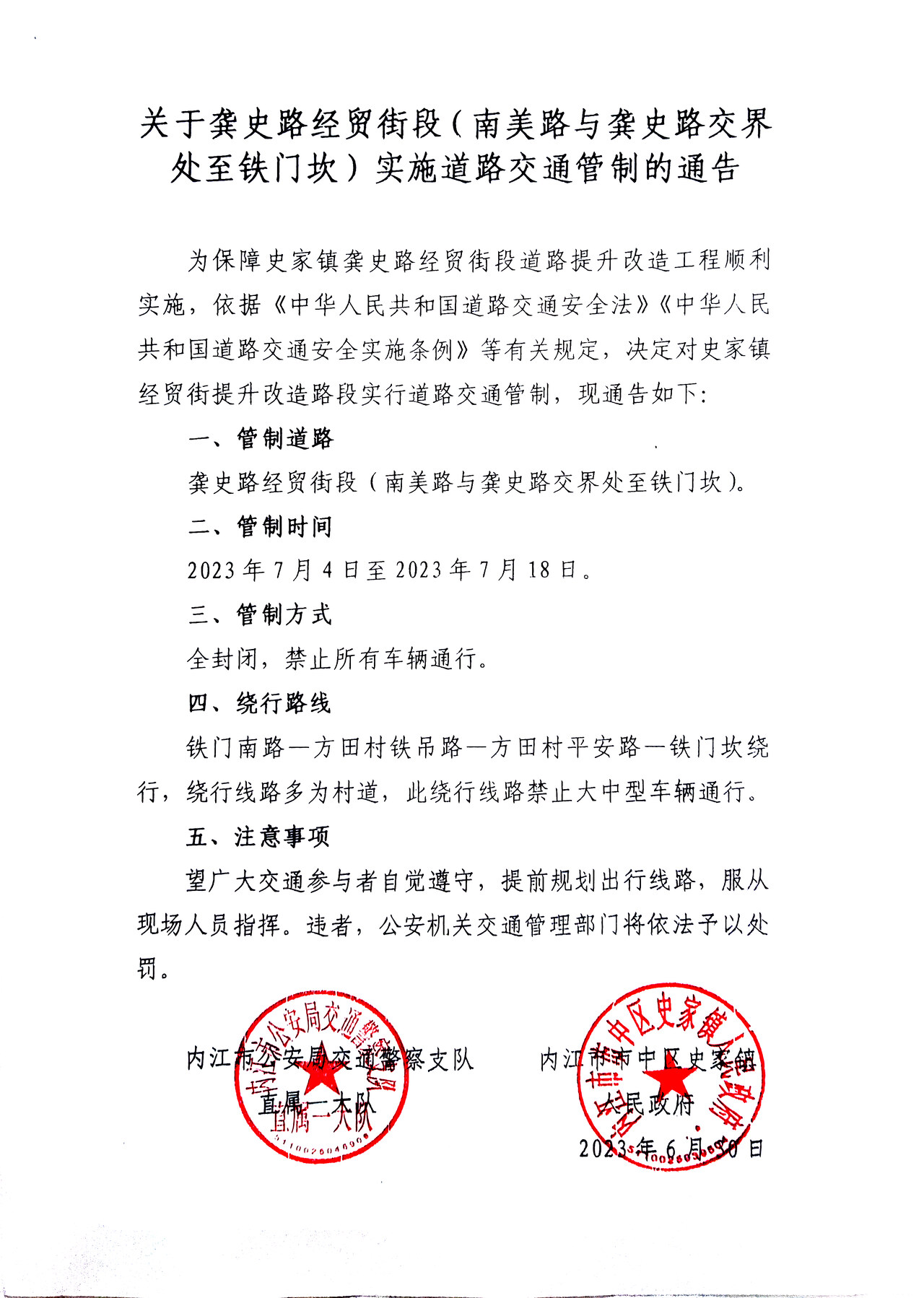 注意绕行!内江一路段全封闭施工15天