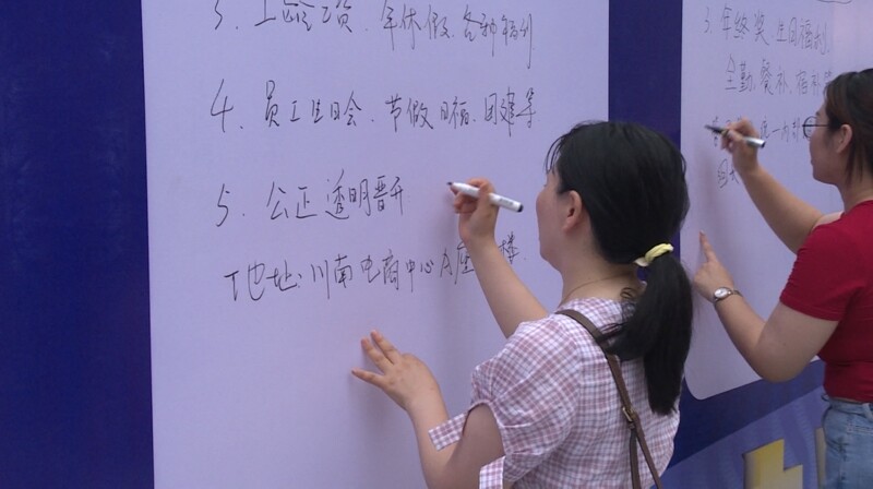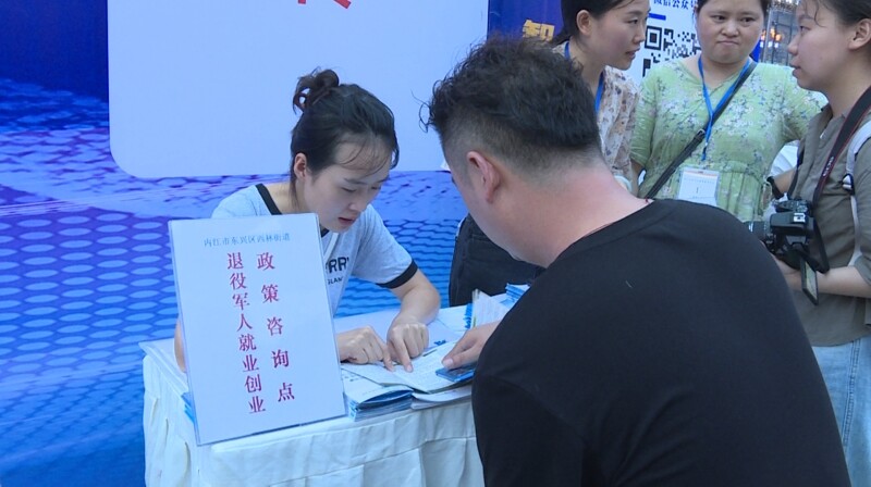 内江融通高科先进材料有限公司人力资源主管毛智贤称:“本次招聘会,是为我公司的一个人才的引进,拓宽了更多的一个宣传的一个渠道,那在这场招聘会当中呢,也目前也有很多的人到我们的这个展位上面来咨询相应的岗位,那针对于这些咨询岗位的这个小伙伴呢,我们也会尽快的建立跟他们之间的一个面试和沟通的一个联系”。