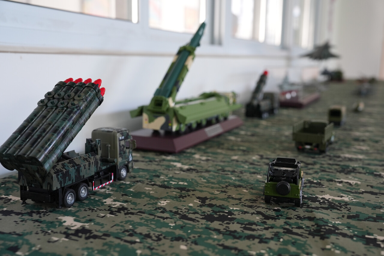 县双拥工作领导小组办公室向花城小学捐赠歼20飞机模型1个、航空5件套模型1套、东风17战略导弹发射车模型1辆、辽宁舰军舰模型1个、99A坦克模型1辆、导弹车坦克飞机6件套模型1套、海陆空6件套模型1套,捐赠红军模型4个。