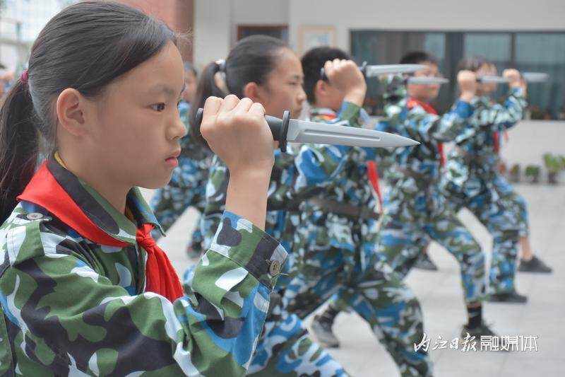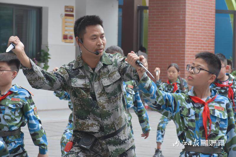 时间:2024-05-17 11:20:02 来源:i 内江退役不褪色。5月9日,退役军人家长冯山国放下手头繁忙的工作,再次穿上迷彩服,走进内江市第十三小学校,教孩子们练习匕首操。