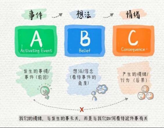 美国心理学家艾利斯提出情绪ABC理论:A表示诱发事件;B表示个体针对此诱发事件产生的一些信念,即对这件事的看法和解释;C表示个体产生的情绪和行为结果。影响我们情绪的并不是发生的事件,而是我们怎么解读这件事。因此我们怎么去解读复习中遇到的困扰、问题,会直接影响到我们的情绪。看到焦虑情绪积极的那一面,把关注的焦点集中在焦虑带来的力量上。