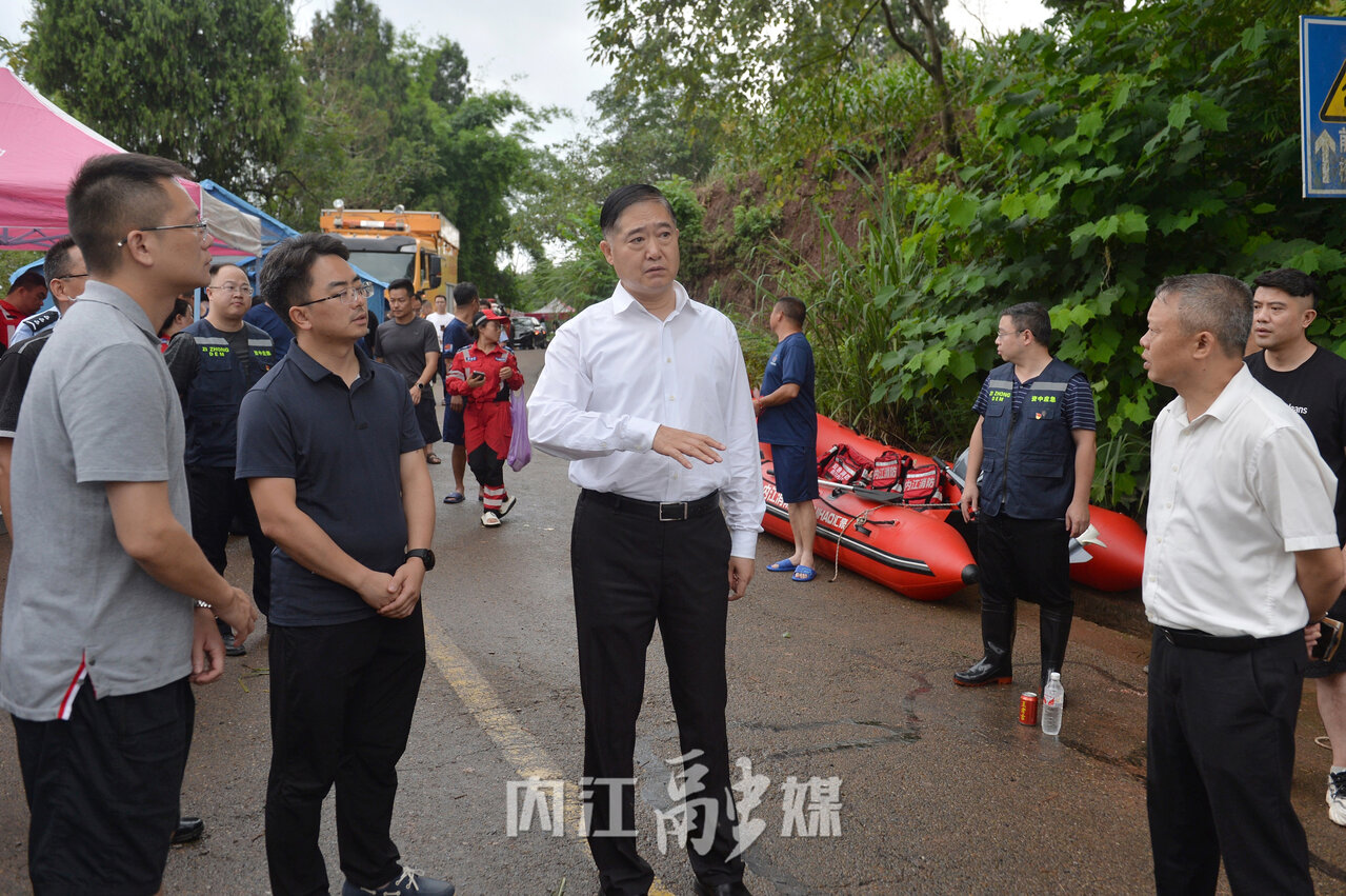 ▲在东兴区白合镇督查指导防汛减灾工作 内江融媒记者 王斌 摄