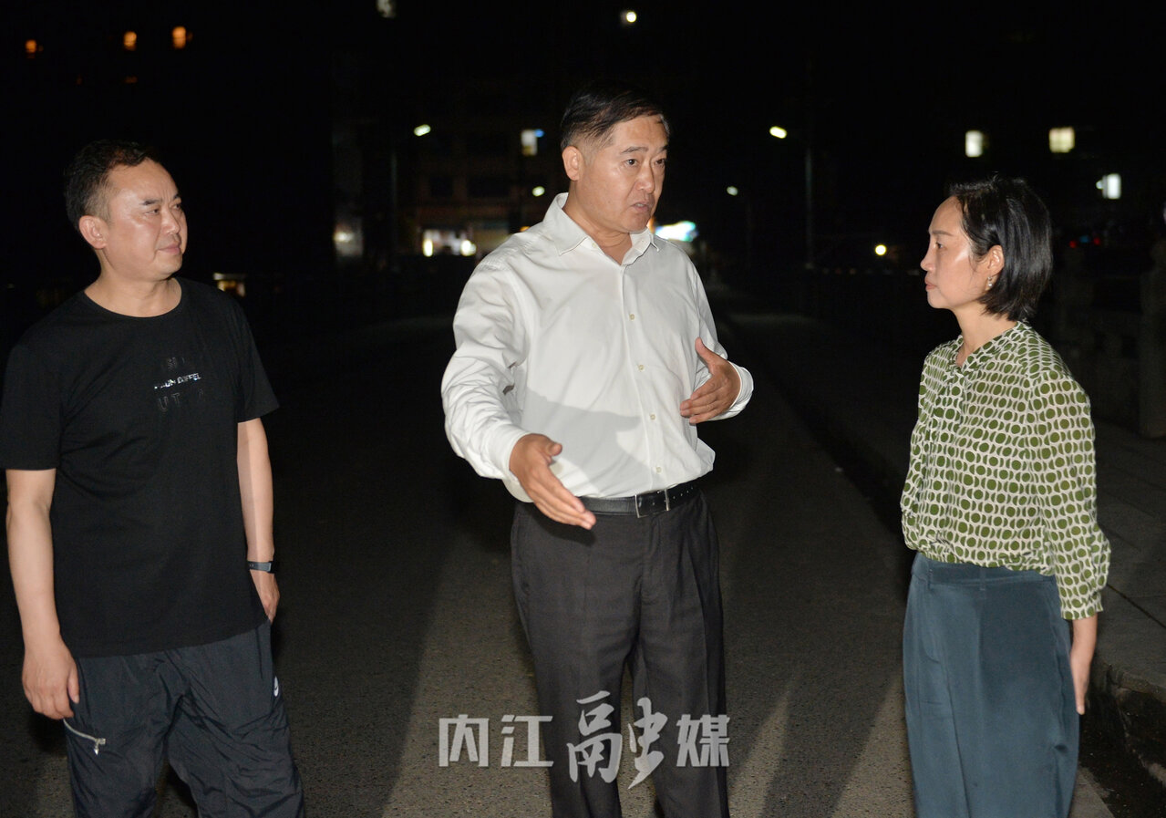 ▲在东兴区郭北镇督查指导防汛减灾工作 内江融媒记者 王斌 摄