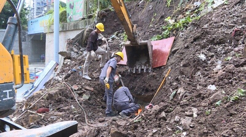 7月15日,记者在玉溪路642号堡坎燃气管道抢险施工现场了解到,内江华润燃气有限公司的工作人员已于13日当天关闭了地埋式燃气阀门,配合主管部门制定了处置方案。目前正进行燃气泄漏监测,以及受损管道的切除、封堵等一系列紧急处置措施,防止燃气安全事故的发生。