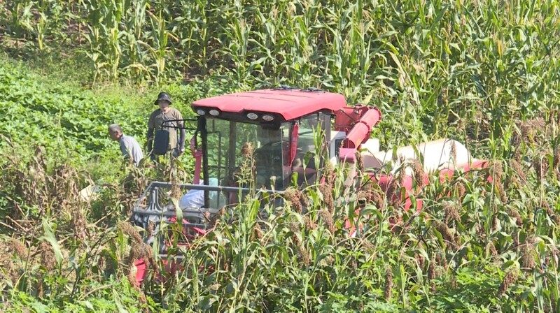 机械收割高粱