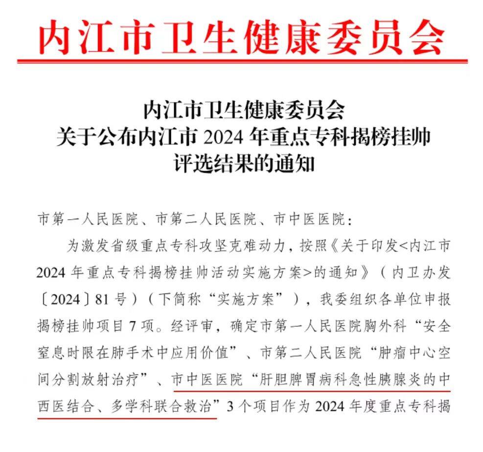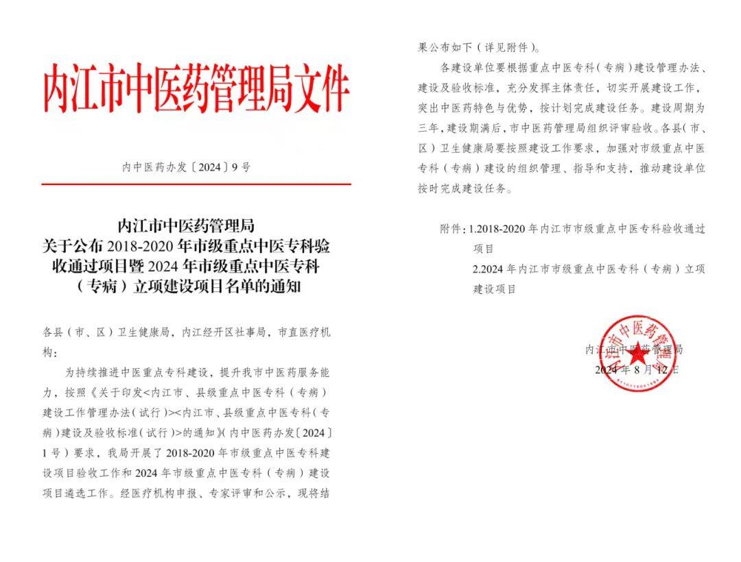【喜讯】3+7!内江市中医医院重点专科实现新突破