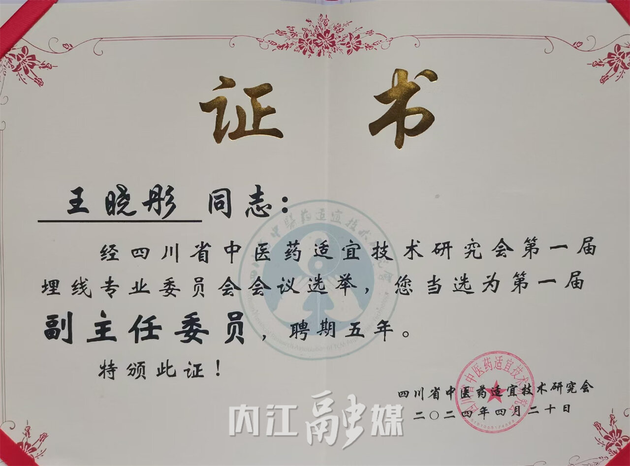 ▲当选为四川省中医药适宜技术研究会第一届埋线专业委员会副主任委员