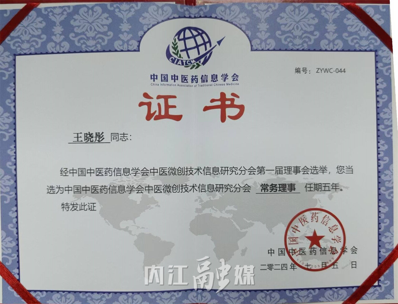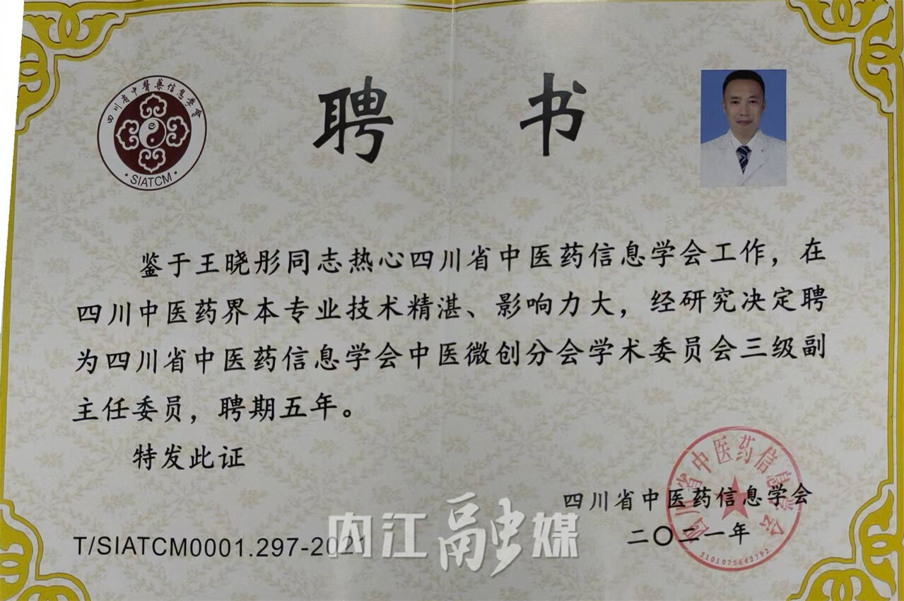 ▲被聘为四川省中医药信息学会中医微创分会学术委员会三级副主任委员