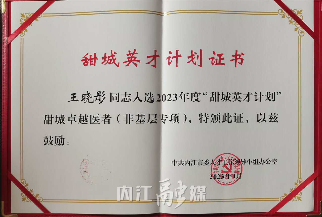 ▲入选内江市“甜城英才计划”甜城卓越医者