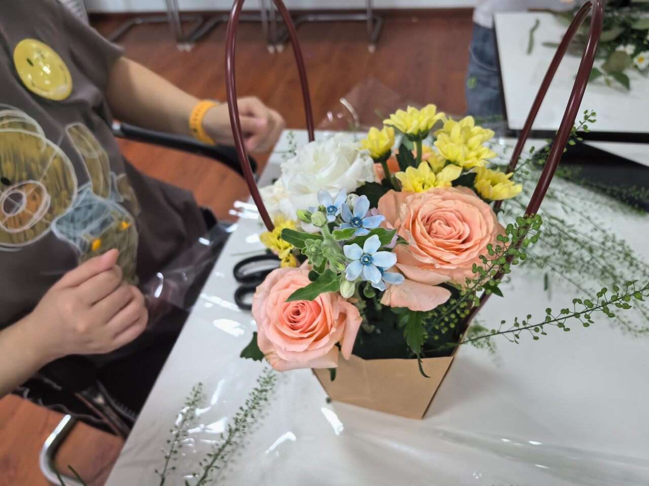在讲师的演示及细心指导下,大家都摩拳擦掌、跃跃欲试,以高涨的热情投入到花艺创作中。由花枝、花叶的修剪,再到花枝大小比例的分布,创作出独属于自己的那一份作品。在交流探讨的过程中,大家一边研究创作,一边不断分享心得。欢声笑语之中,不仅亲身体验到了插花制作的乐趣,也感受到了其活动中的幸福氛围。细腻的花香在空气中弥漫,情感在活动中延续。在这个充满浪漫与创意的午后,我们共同见证了每一份独特创意的诞生,每一朵花、每一片叶都被赋予了新的生命与意义。感谢每一位同事的热情参与和精彩创作,是你们的巧手与匠心,让这个七夕变得更加多彩多姿。