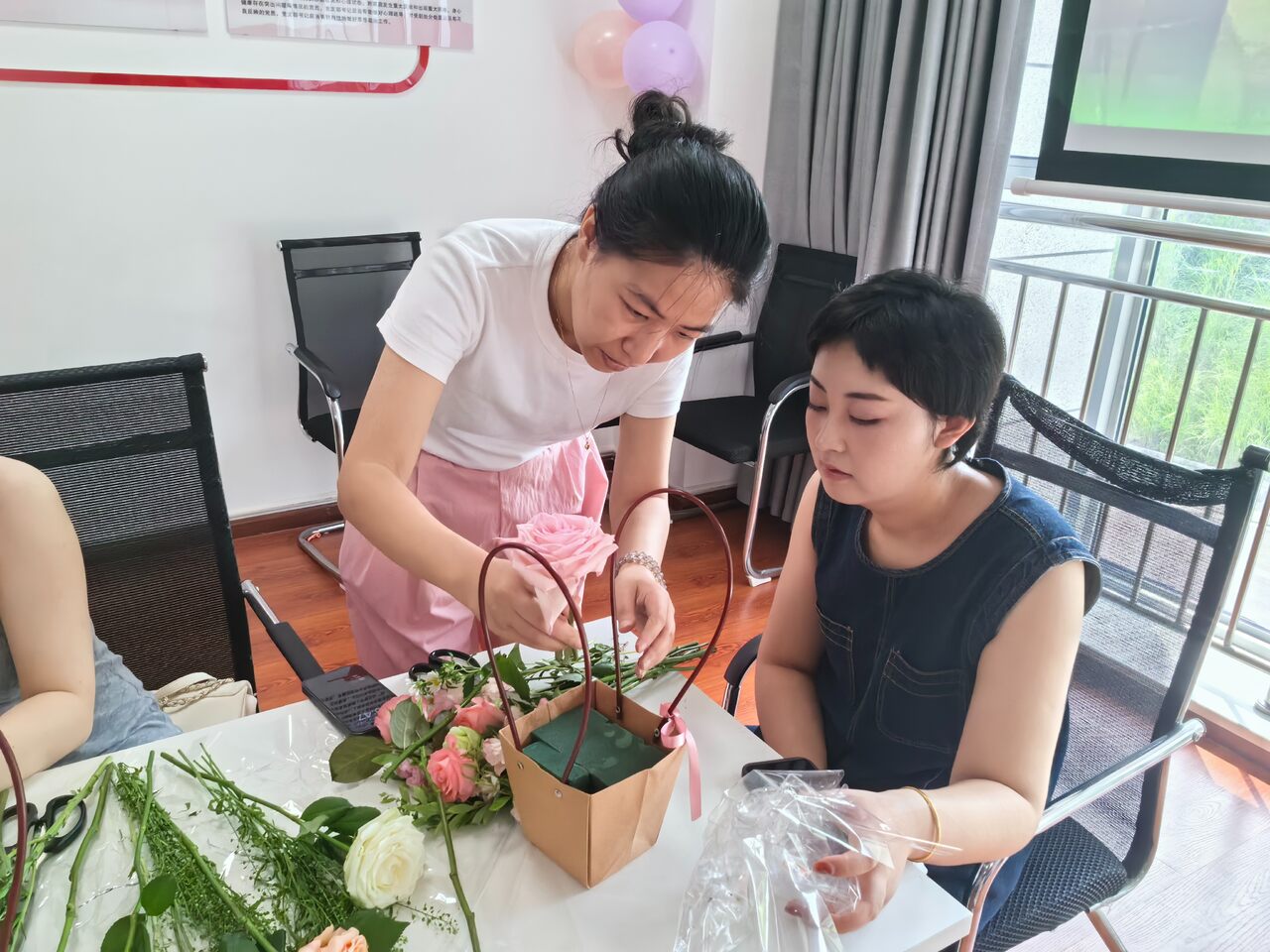 插花不仅美化生活,更能让爱意在花间流淌。让我们一起用鲜花编制一段浪漫的诗篇。此次活动由教程讲解与实践操作两部分组成。活动开场讲师由七夕及花束寓意引入,提出“花艺作为一种优雅而富有情感的艺术形式,与七夕节的浪漫氛围相得益彰”。