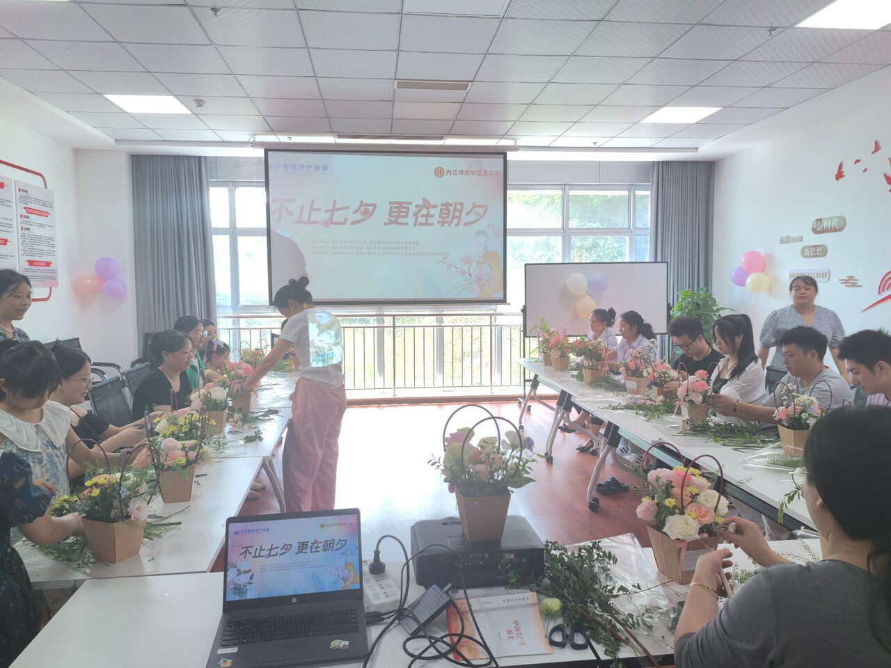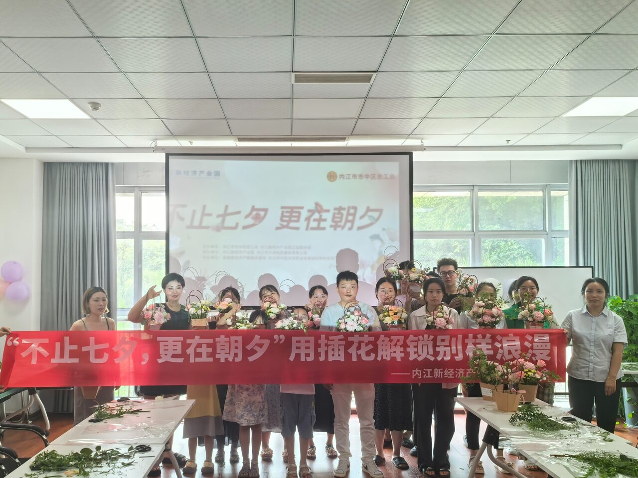 每一朵花都有它的语言,每一次插花都是一次情感的传递。七夕佳节,为进一步丰富园区内企业职工的文化生活,促进企业及职工间的交流互动,传承和弘扬中国传统文化,8月9日,由内江市市中区总工会、内江新经济产业园工会联合会主办;内江新经济产业园、内江市大合科技服务有限公司承办;成渝新经济产教融合基地、内江市中区未言职业技能培训学校有限公司共同开展的“七夕缘启,浪漫满溢”温暖七夕活动在内江新经济产业园圆满举行。园区企业代表及内江新经济产业园职工代表20余人参加了活动。