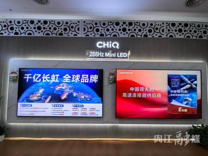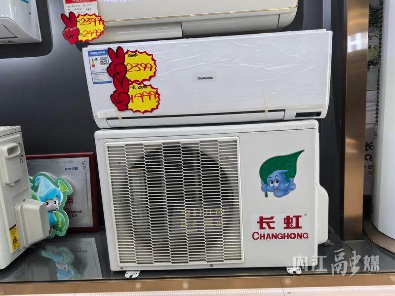 长虹·美菱内江办事处市场总监罗霄介绍,在本次以旧换新消费季活动上,长虹·美菱推出的产品有空调、电视、洗衣机、冰箱等。其中本次活动推荐的电视是长虹观赛系列,是100寸巨幕,也是全球首个AI大模型云帆系统,原价13999元,除了享受厂家2000元补贴外,还立享政府补贴20%,到手价9599元;另外,长虹空调在同行业具有超高的性价比,本次活动主推款是一级能效、1.5匹长虹挂机空调,原价2399元,厂家价1999元,在此基础上再享受政府补贴20%,到手价1599元,并提供10年保修。