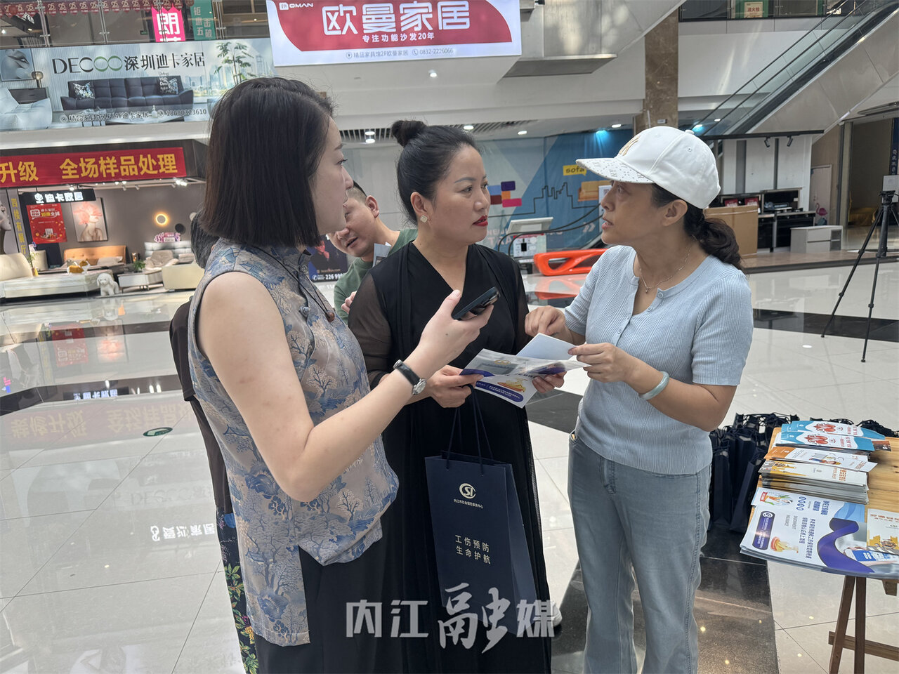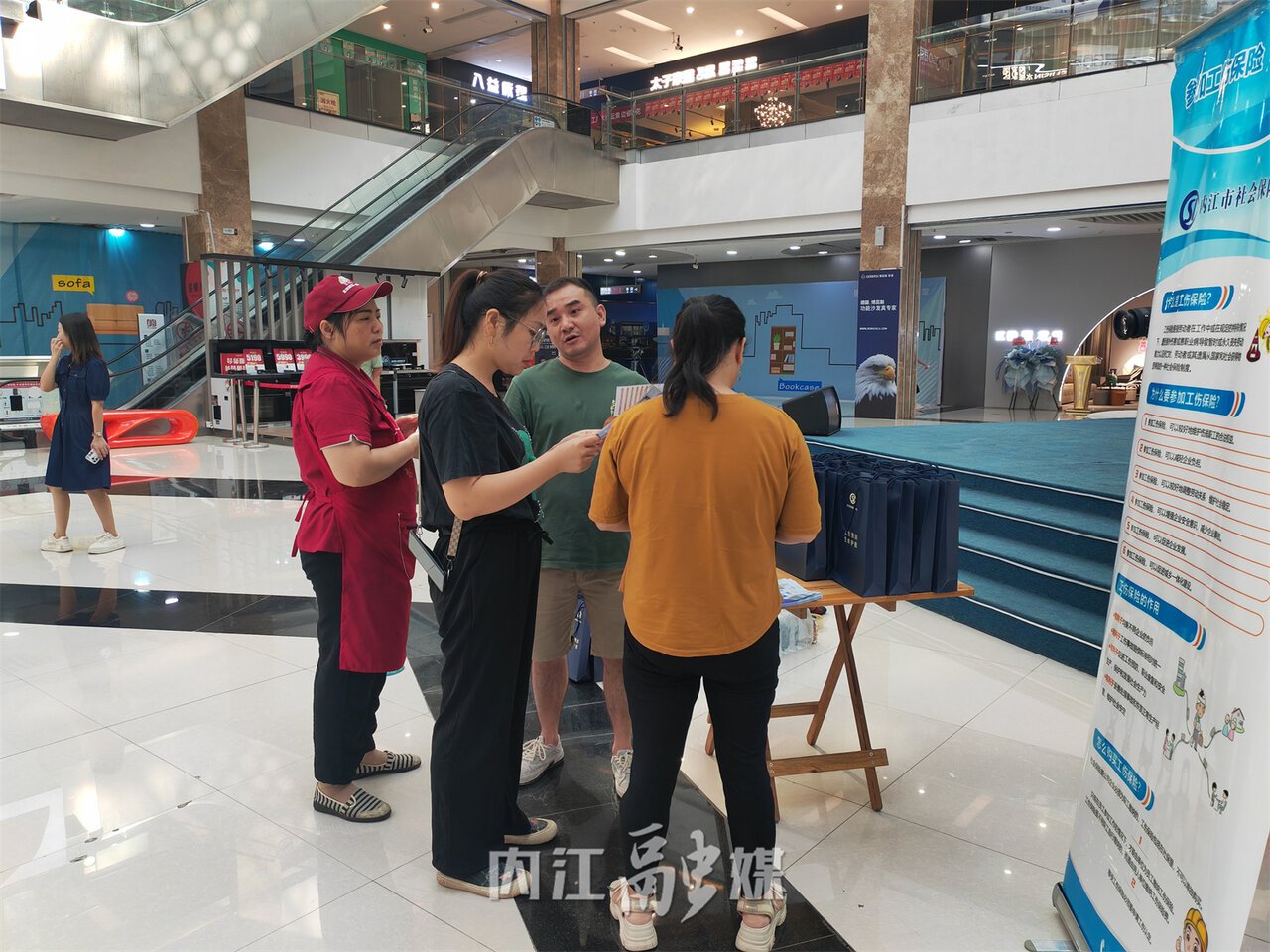 为宣传普及工伤保险政策,推进工伤预防和参保扩面工作,内江市人社局利用社保系统和市场监管系统大数据分析,对全市未参保企业分布聚集点开展精准宣讲。今天上午(9月10日),市人社局、市社保中心、内江经开区社保局的工作人员来到经开区未参保企业的集中区域——内江国际家居商贸城开展工伤保险增参保线下宣传活动。