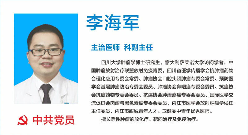 李海军现任内江市第二人民医院肿瘤二科党支部书记、副主任,他扎根临床,带领团队率先开展多项肿瘤放射治疗新技术,填补内江市空白。先后荣获四川省优秀共产党员、内江市“甜城英才计划”甜城青年人才、内江市“中青年优秀医师”等荣誉称号。