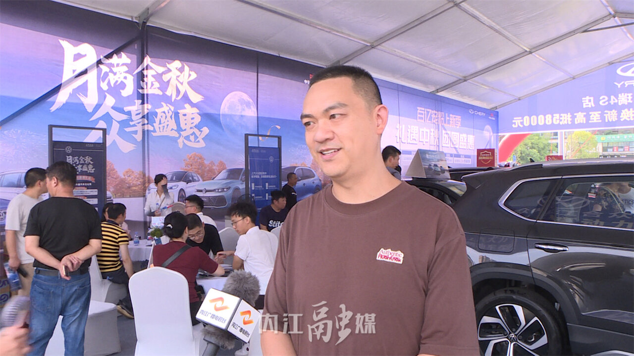 上汽大众内江合众4s店市场专员朱兴美介绍道:“这次中秋节车展,我们总共来了五台(种)车型,其中新上市的途岳新锐也到了,一口价七万九千九起,以旧换新的话,最高优惠是三万五,车展现场有很多的小礼品,包括月饼,还有其他一些小东西, 欢迎大家来车展看车、赏车。”