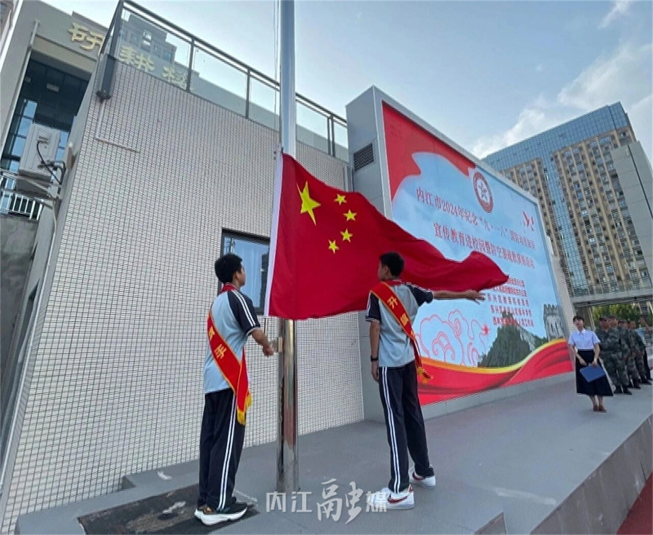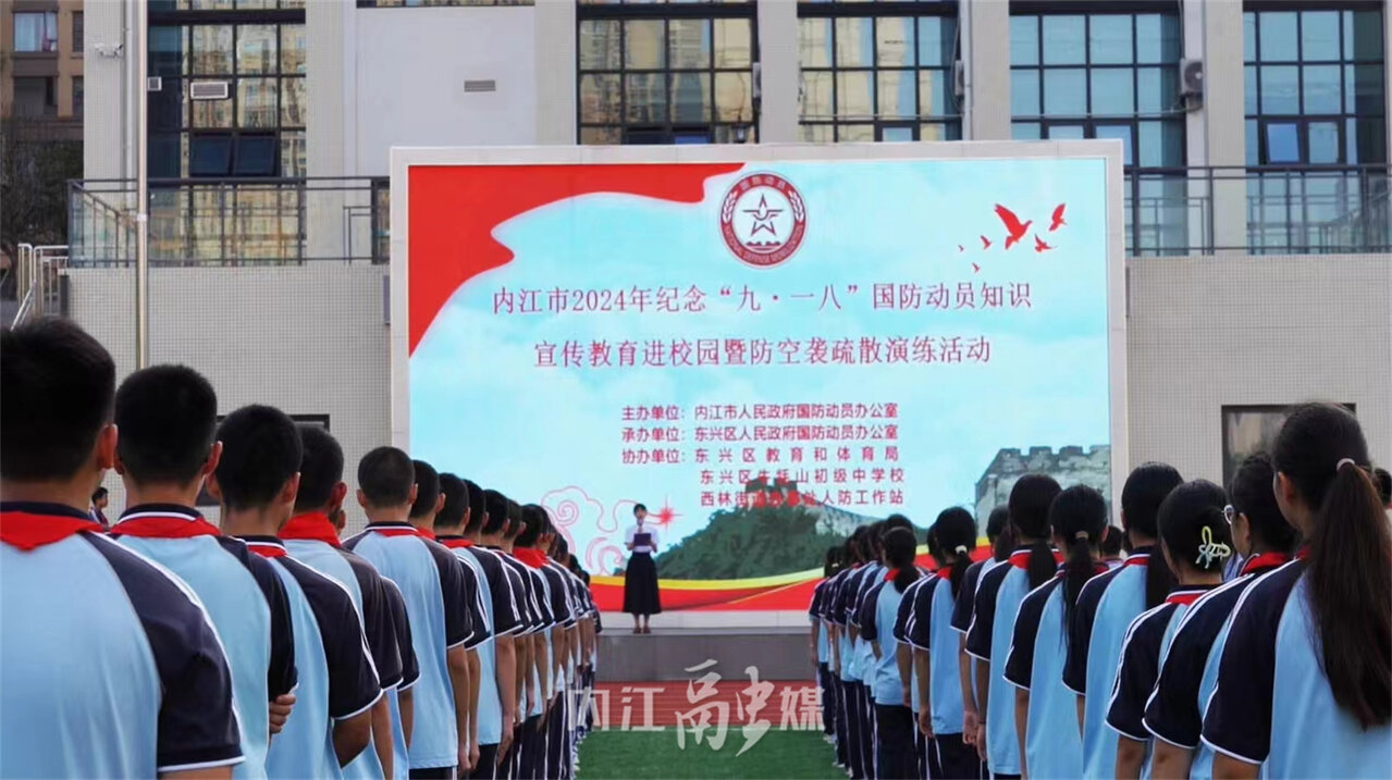 为增强全民国防教育,提升广大师生国防观念、人防意识及应急避险能力,丰富学校防空教育内容,9月14日,由内江市人民政府国防动员办公室统筹组织,东兴区人民政府国防动员办公室承办的“内江市2024年纪念‘九一八’国防动员宣传教育进校园暨防空袭疏散演练活动”在牛牦山初中举行。
