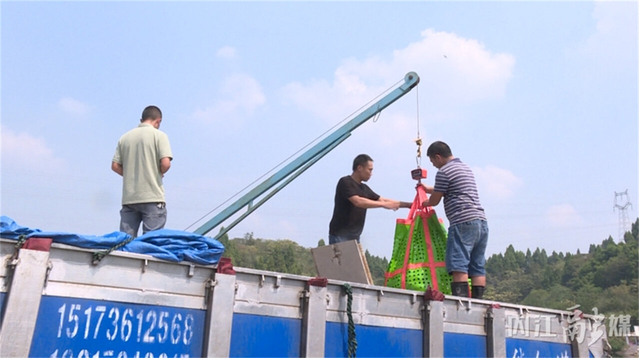 随后,捕捞上的鱼儿被装入袋中、用吊车拉起称重,最后用鲜活运输车运往成都、重庆以及周边各地市场。