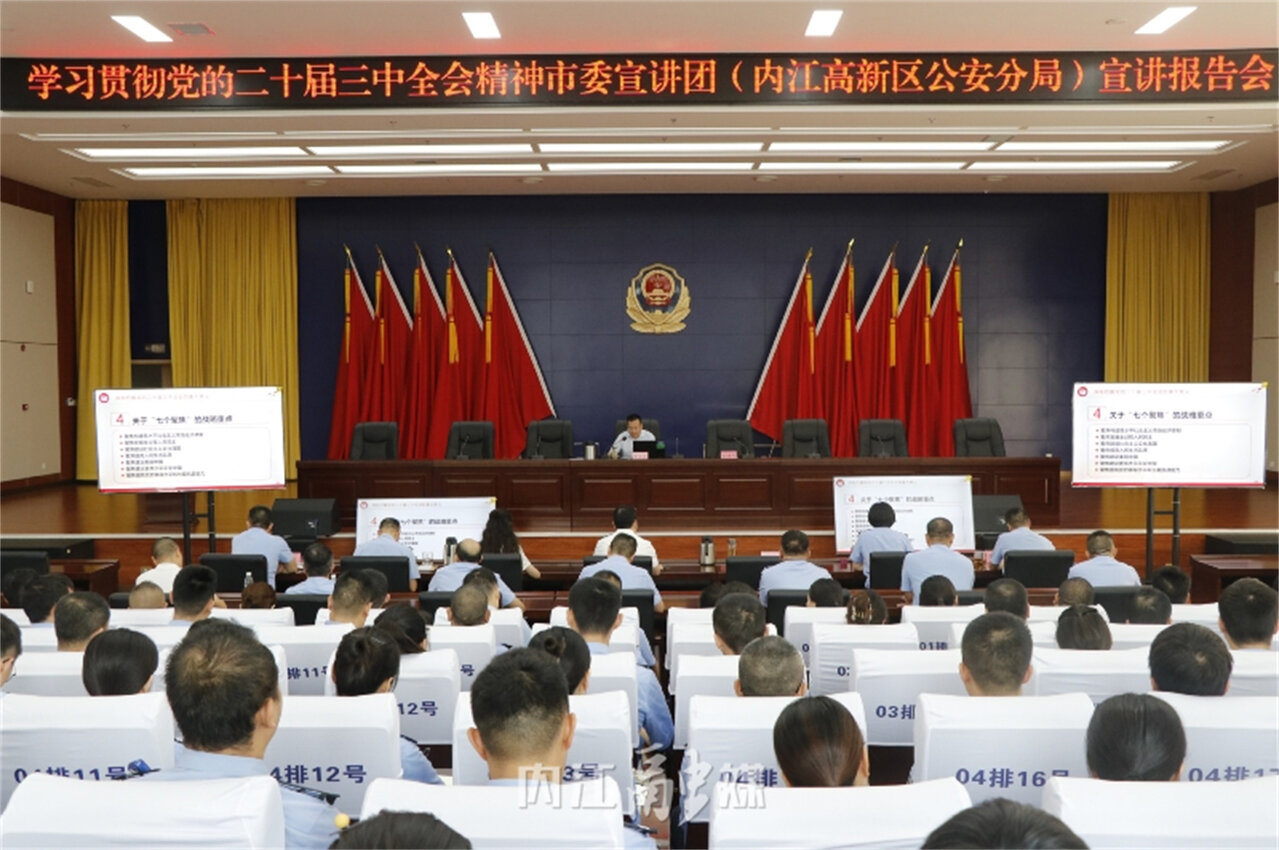 9月27日,市委宣讲团第七分团成员、市民政局党组书记、局长黄焕燃,到内江市公安局高新技术开发区分局宣讲党的二十届三中全会精神。