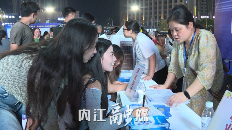 内江职业技术学院2025届应届毕业生王晓芳告诉记者,“我学的是大数据与会计专业,今天有夜市招聘会,就特地过来看一下,现场有很多企业、也有很多岗位符合自己的专业要求,刚才也投了几份简历,希望能够找到自己适合的工作”。