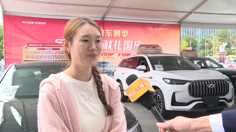 市民韩洁:“今天我在万达这边看车展,然后看到一台奇瑞的瑞虎9,外观各方面都还不错,内饰也挺豪华的,销售带我去试驾了一下,感觉空间各方面都够用,我想在线下的门店再关注一下这台车。”
