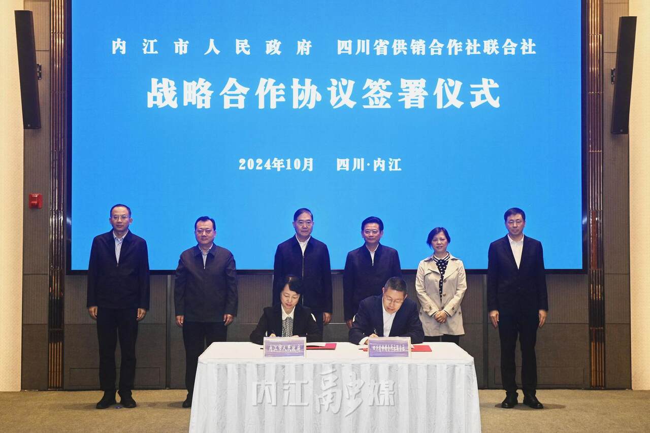 10月17日,内江市人民政府与四川省供销合作社联合社战略合作协议签署仪式在内江举行。根据协议,双方将在夯实基础、拓展服务、畅通物流、再生资源发展等方面开展深度合作,共同推动内江供销社系统综合改革工作,全力支持内江构建更加完备高效的为农服务体系,为内江加快建设成渝发展主轴产业强市和区域物流枢纽作出积极贡献。