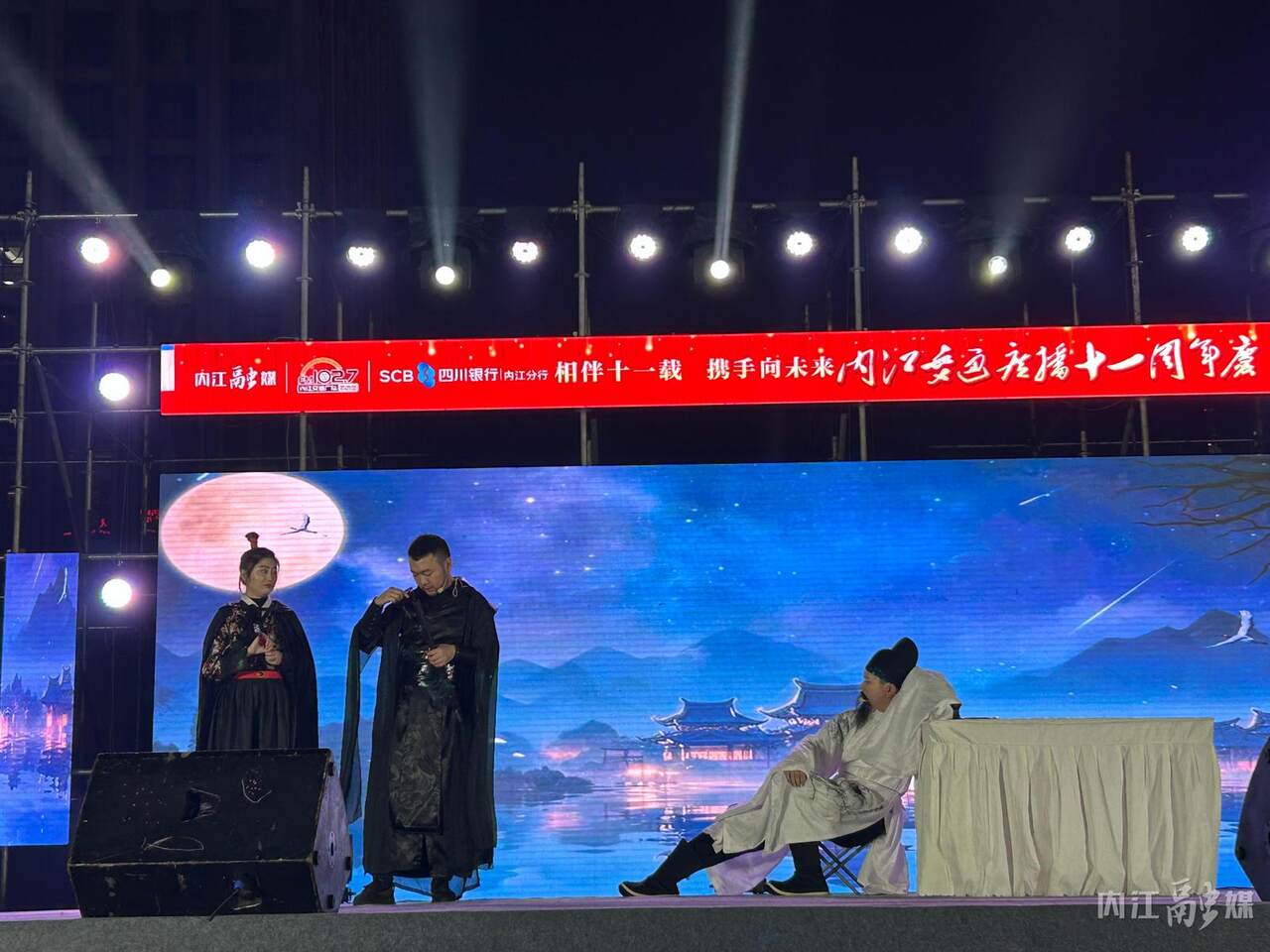 晚上7时许,活动在古筝、琵琶悠扬的旋律中拉开序幕。随后,一系列精心准备的节目有序登场,《你要跳舞吗》《空心》《不为谁而作的歌》等热门曲目迅速点燃现场热情。内江交通广播主持人们也和听友们齐聚一堂,用音乐与歌声串联起属于彼此的十年回忆,