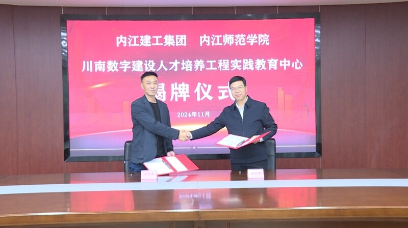 为加强建筑工程专业人才队伍建设,促进人才培养紧跟建筑行业数字化转型与升级的大趋势,今天上午(11月13日), 内江师范学院省级大学生校外实践基地——川南数字建设人才培养工程实践教育中心揭牌仪式在内江建工集团举行。