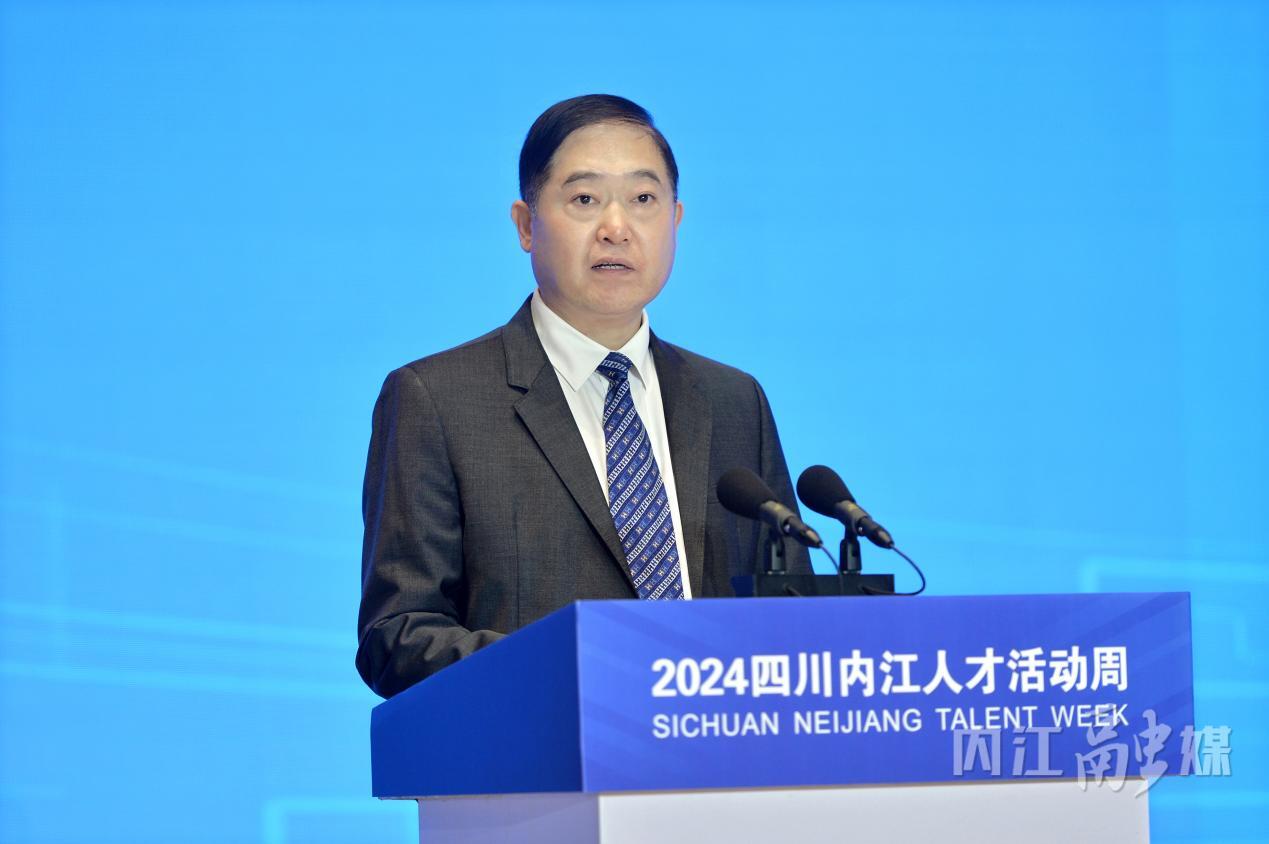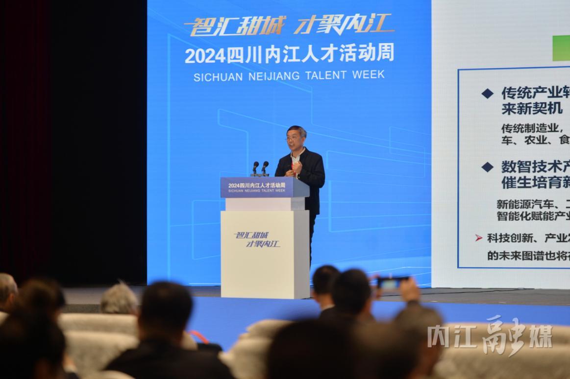 中国人事科学研究院原院长吴江围绕“统筹推进教育科技人才体制机制一体改革,形成内江人才竞争优势”作主旨演讲