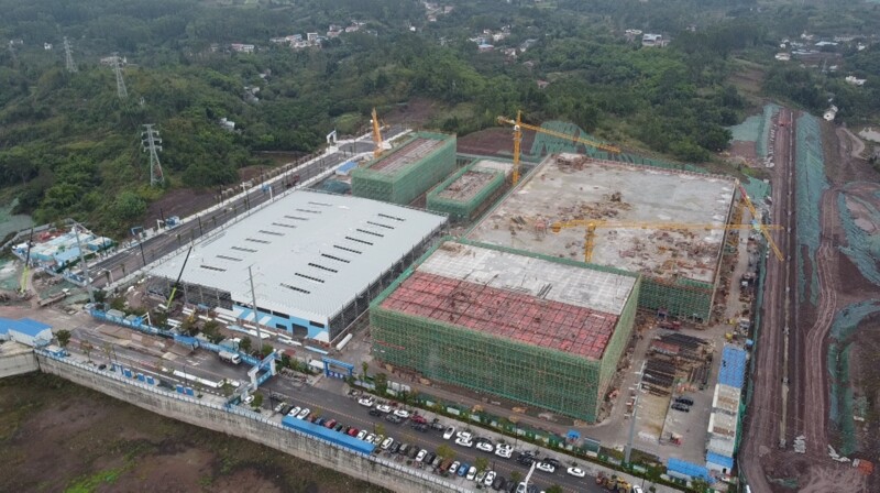 与此同时,在内江高新区白马园区,IGBT模块材料和封测模组产业园项目也是一派奋进的施工场景。260余名工人分布在各个施工区域,进行厂房屋面、墙面等安装作业,全力以赴抢工期、赶进度。