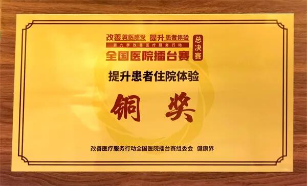 据悉,本赛季以“改善就医感受,提升患者体验”为纲领,分为五个赛区,设置了涵盖患者诊前、门诊、住院、诊后、延续服务、药学服务、康复、人文建设、服务创新探索等十个主题,吸引了全国近千家医院积极参与,每个主题设有1个金奖、2个银奖、3个铜奖,数个卓越案例。而我院荣获的铜奖是西南赛区提交的主题四“提升患者住院体验”全国总决赛中的最好成绩。