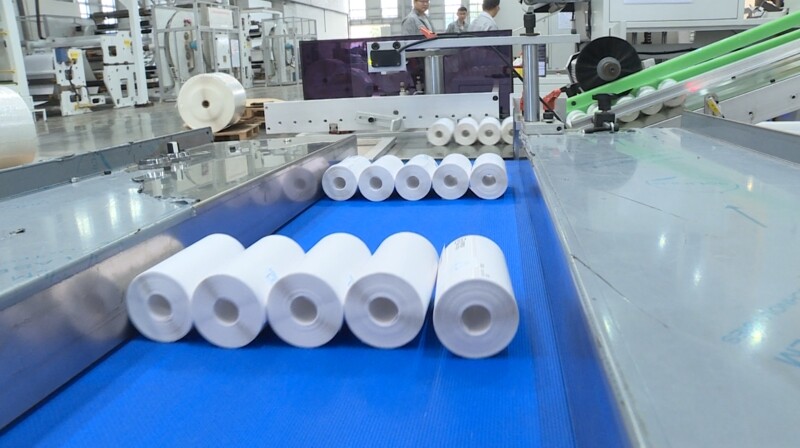 不仅如此,在一旁的8 条老式涂布生产线也已全面升级为智能化在线涂布生产线。工人只需向设备输入指令,机器即可自动生产。此前一条生产线需20名工人,如今仅2人就能高效完成,人力成本大幅降低,工序也更加精简,智能化产线显著提升了生产工艺与技术水平。