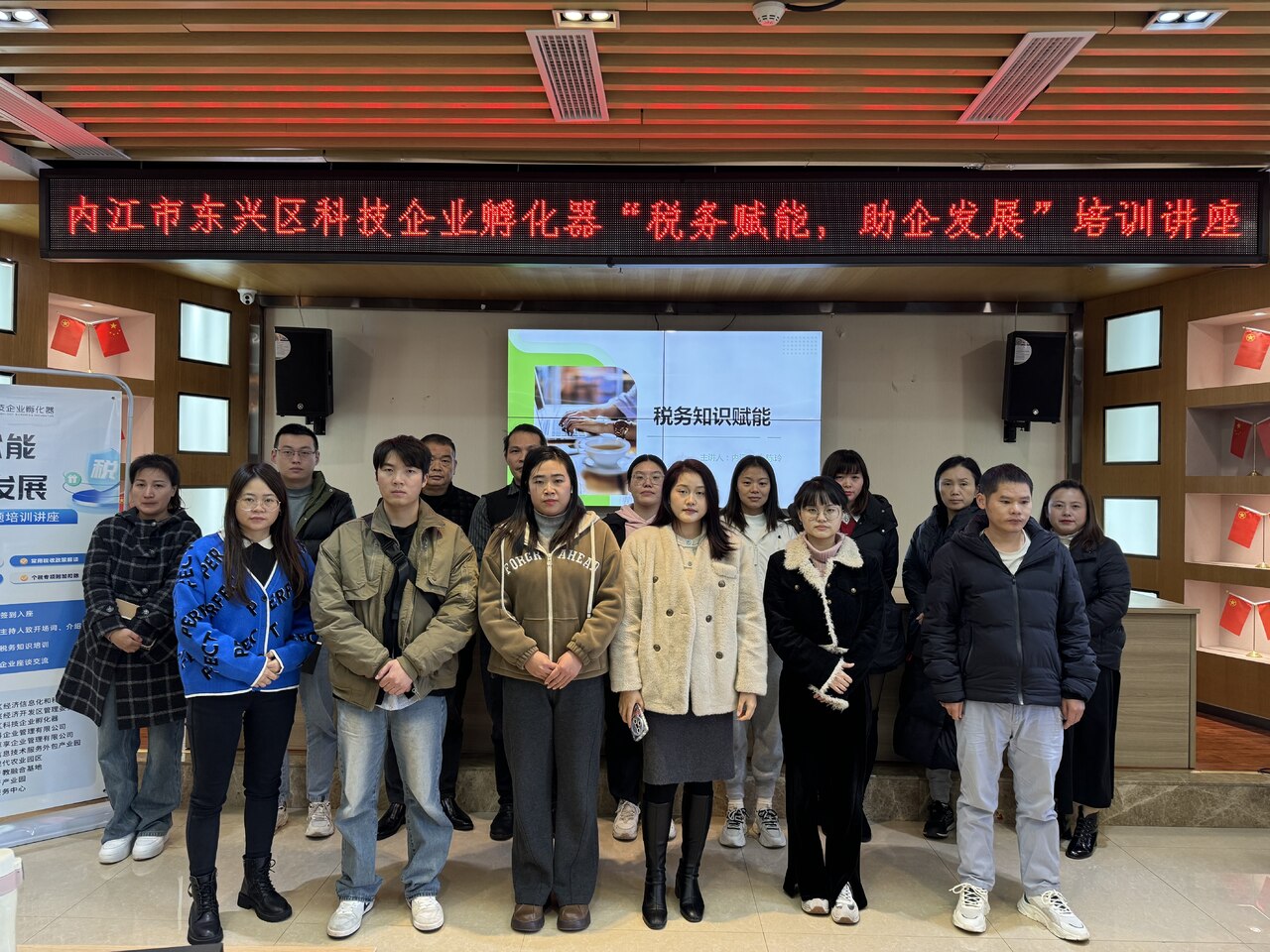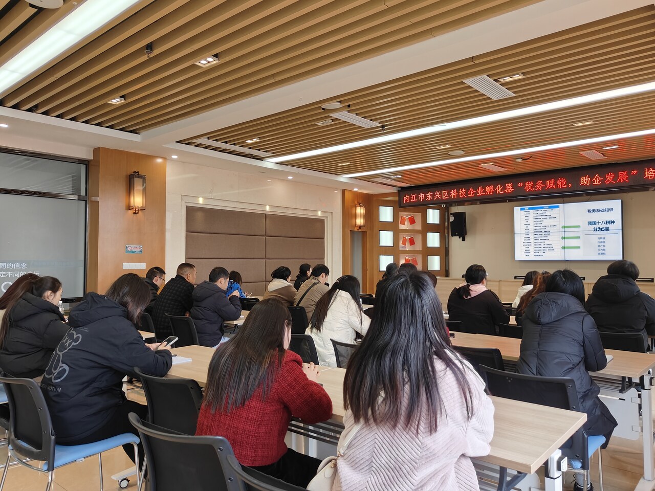 为助力企业更好的掌握国家税收政策,加强税务风险防控与筹划,提高税务管理水平及规范公司税收管理。11月28日,由内江市东兴区经济信息化和科学技术局、四川内江东兴经济开发区管理委员会、内江市东兴区科技企业孵化器主办,内江大合创科企业管理有限公司、内江市时誉卓享企业管理有限公司承办,内江软件与信息技术服务外包产业园、内江市长江现代农业园区、成渝新经济产教融合基地、内江市新经济产业园、东兴区就业服务中心协办的“税务赋能,助企发展”税务知识专题培训讲座在东兴区科技企业孵化器圆满举办,此次讲座汇集了30余家企业,共计40余人参加了本次培训。