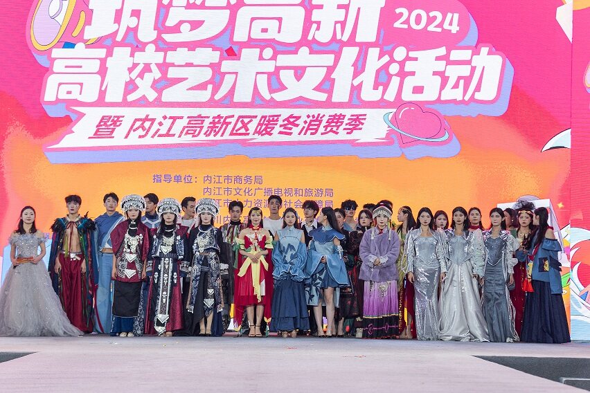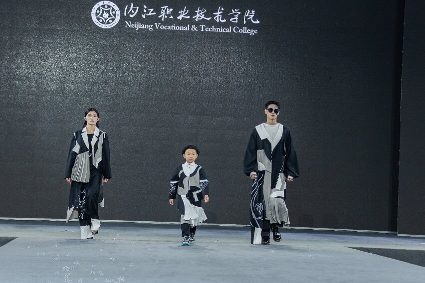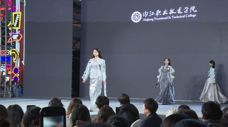 当晚,在简短的开幕式后,迎来了本次活动首个主题——大学生服装毕业设计秀。内江职业技术学院文旅学院的学生将服装设计毕业作品搬上舞台,在毕业之际完成人生中第一场大秀,让作品走出校园面向社会。