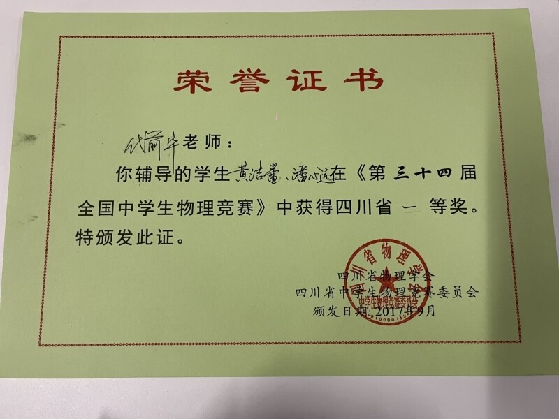 工作二十七载,虽然披星戴月,辛苦十分,但代前华表示,看着一届又一届学子成长成才,他内心欣慰,精神富有,没有愧对于老师的这份职责。多年来,代前华先后获得内江市人民政府第六届教学成果奖和内江市教书育人名师荣誉称号,还多次获得内江市普通高中教育教学年级管理先进个人。他辅导的学生在多届全国中学生物理竞赛中获得四川省一等奖。因教学成绩突出,代前华于2023年初被确定为代前华物理名师工作室领衔人。截至目前,工作室已获得国家、省市级荣誉27次,教学竞赛获奖21次,发表论文12篇。