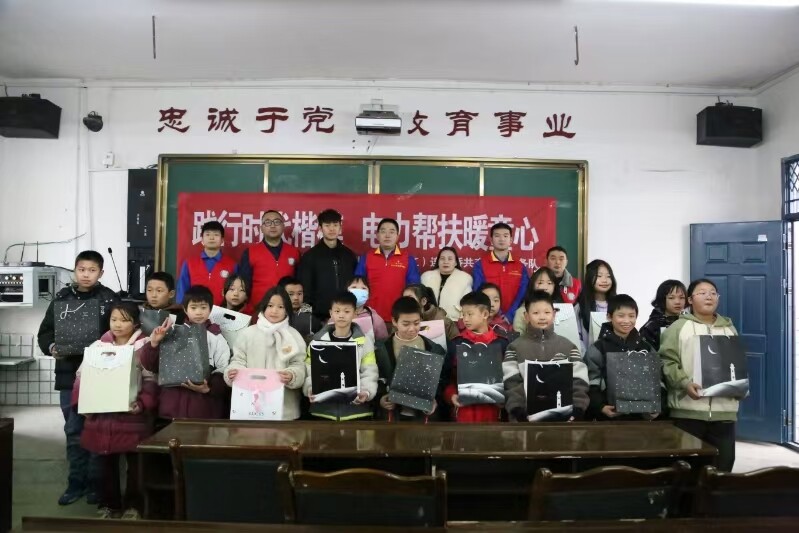 1月7日,国网内江市东兴供电公司组织国家电网四川电力(内江)连心桥共产党员服务队、白合供电所志愿者和团支部青年志愿者前往川电留守儿童之家白合中心校,开展“践行时代楷模精神 电力帮扶暖童心”活动。