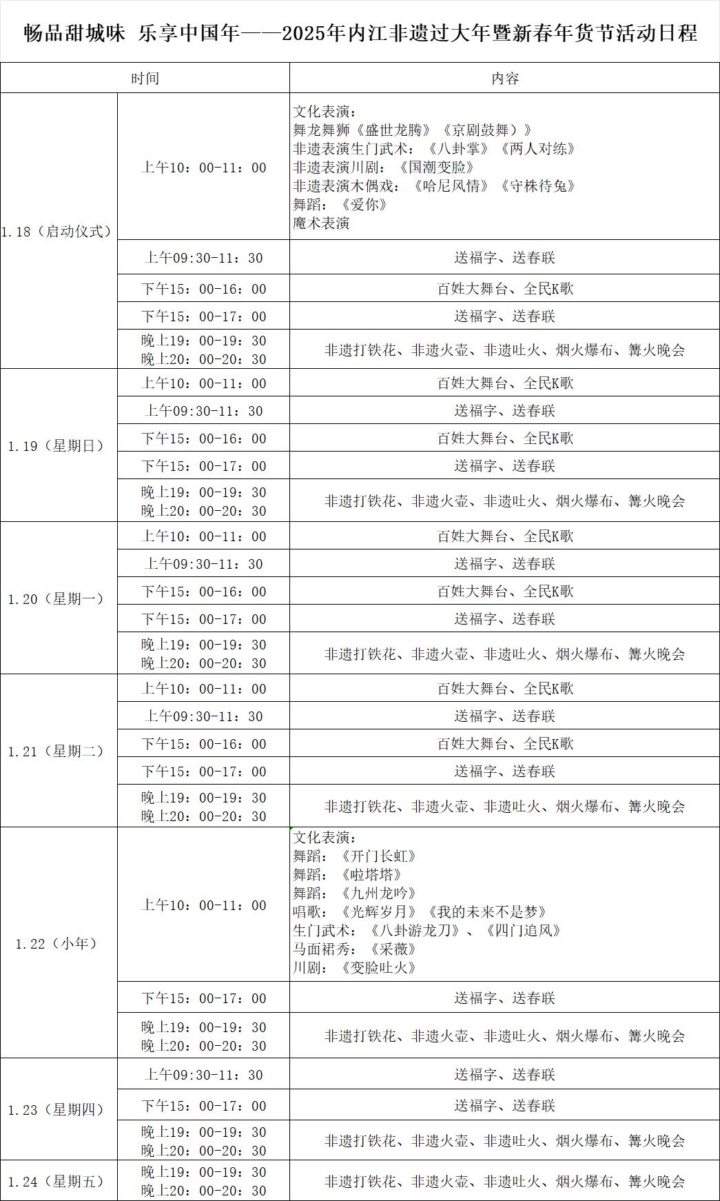 畅品甜城味,乐享中国年——2025年内江非遗过大年暨新春年货节将于2025年1月18日(腊月十九)至1月25日(腊月廿六)在内江农副产品综合批发市场盛大启幕啦!