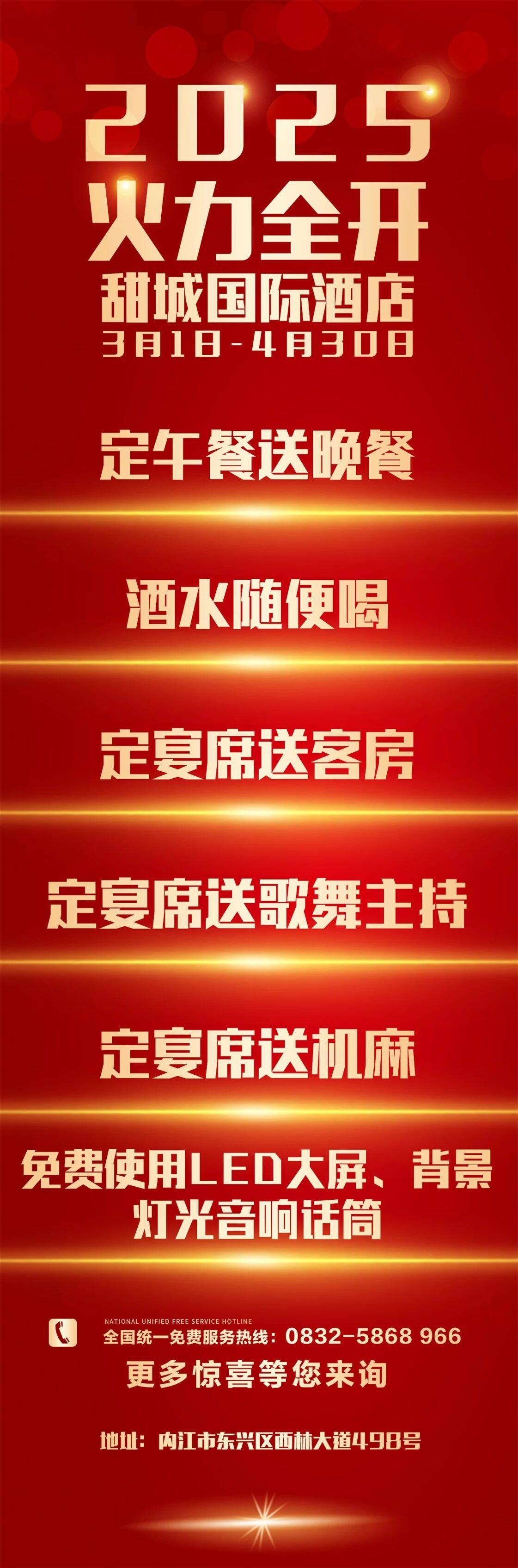 内江甜城国际酒店春日狂欢!¥798起享宴席+客房+酒水畅饮,限时开抢!