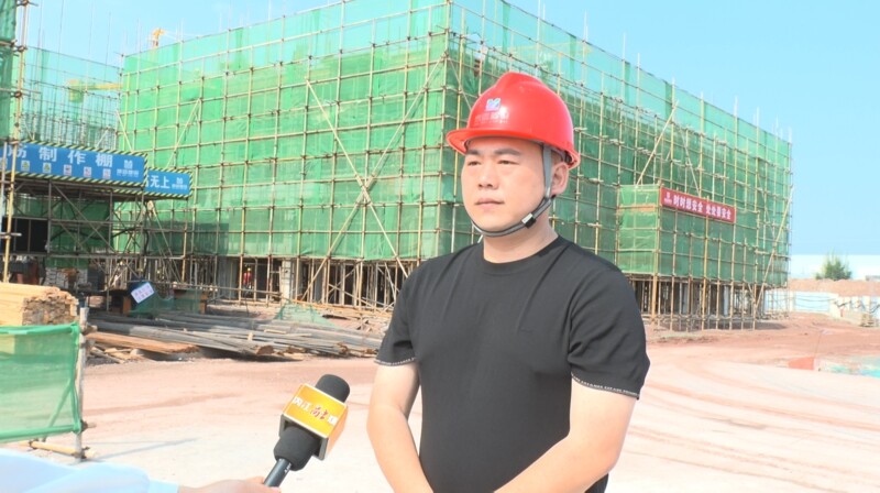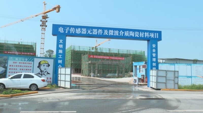 记者万丹丹介绍道,“我现在是在电子传感器元器件及微波介质陶瓷材料项目的现场,在我身后,工人们正在进行钢筋绑扎、水电预埋和模板加固,现场一派热火朝天的建设景象。”