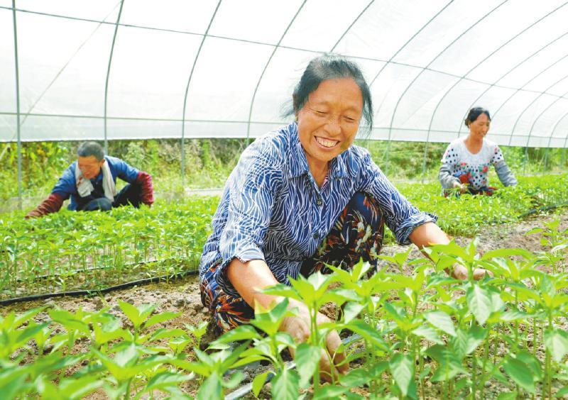 四川大学在对口帮扶岳池县苟角镇石板坡村过程中,帮该村建起川石产业园,积极引进业主发展特色农业产业。图为石板坡村村民在产业园务工。