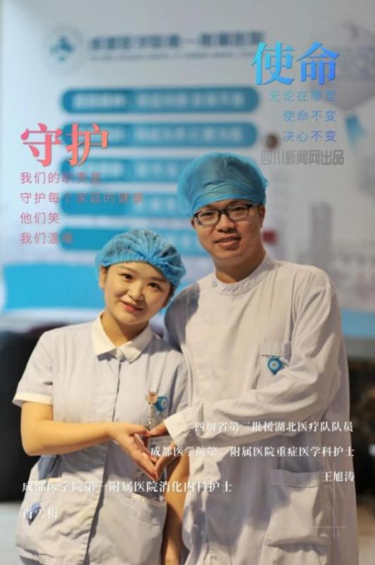 疫情后,王旭涛奔赴武汉驰援,肖雪梅支援发热门诊,他们“肩并肩”共同奋战在抗疫最前线,他们用实际行动证明90后也能撑起一片天。王旭涛在从武汉回蓉休整隔离期满后,第一时间向女友肖雪梅求婚,两人在5.12护士节当天领取了结婚证。