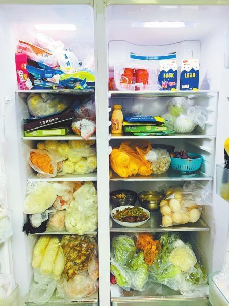 达州一市民家中冰箱塞满了提前购买的食材和剩菜剩饭。 袁馨怡摄