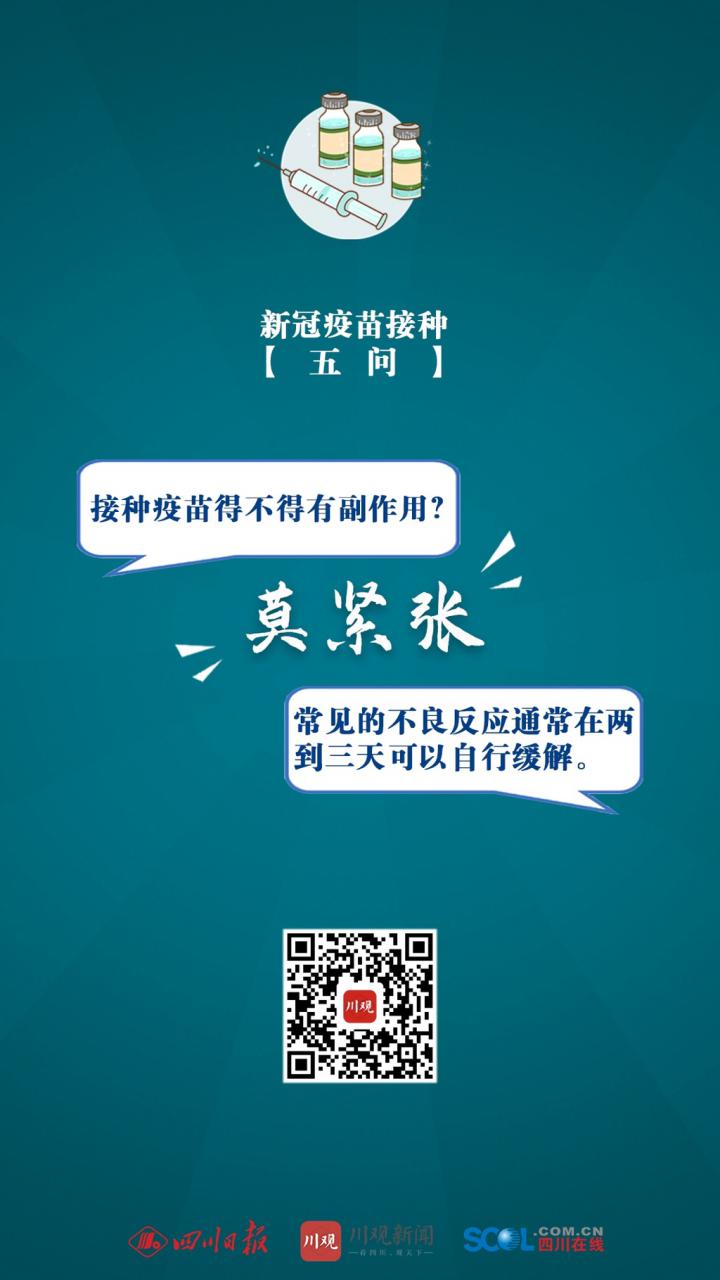 “从前期新冠病毒疫苗临床试验研究结果和紧急使用时收集到的信息,新冠病毒疫苗常见不良反应的发生情况与已广泛应用的其他疫苗基本类似。”四川省疾病预防控制中心免疫规划所主任医师王进表示,常见的不良反应,主要表现为接种部位的红肿、硬结、疼痛等,也有发热、乏力、恶心、头疼、肌肉酸痛等临床表现。这些临床表现一般不需处理,通常在两到三天之内自行缓解。目前尚未监测到发生与新冠病毒疫苗相关的严重不良反应。