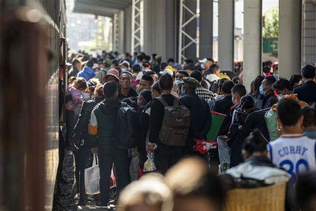 ↑人们准备乘坐5633次列车出行(4月11日摄)。
