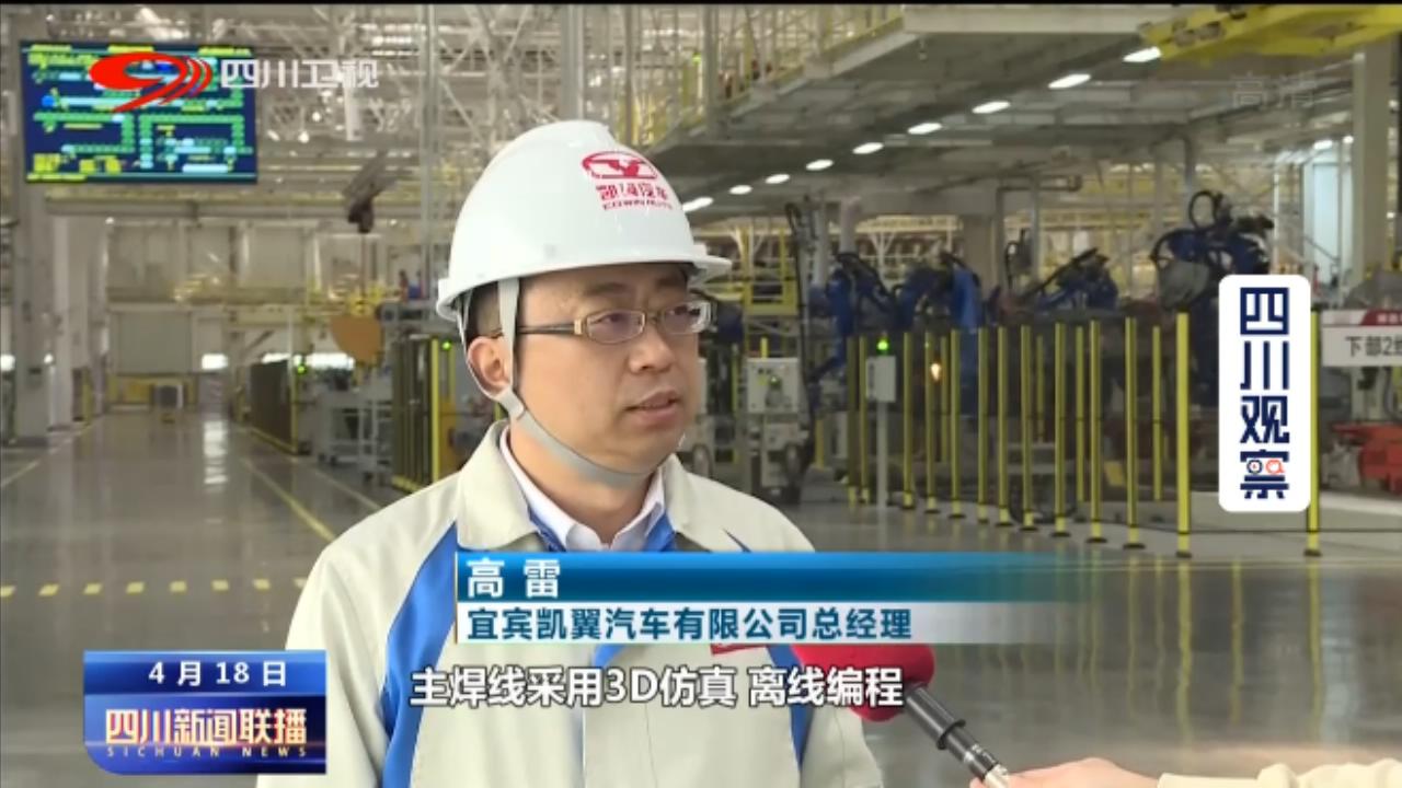 宜宾凯翼汽车有限公司总经理高雷:主焊线采用3D仿真、离线编程、机器人视觉引导作业等方式,大大提升了质量和效率。整车焊点是4969个,自动化率达到了90%以上,实现了自主领先。