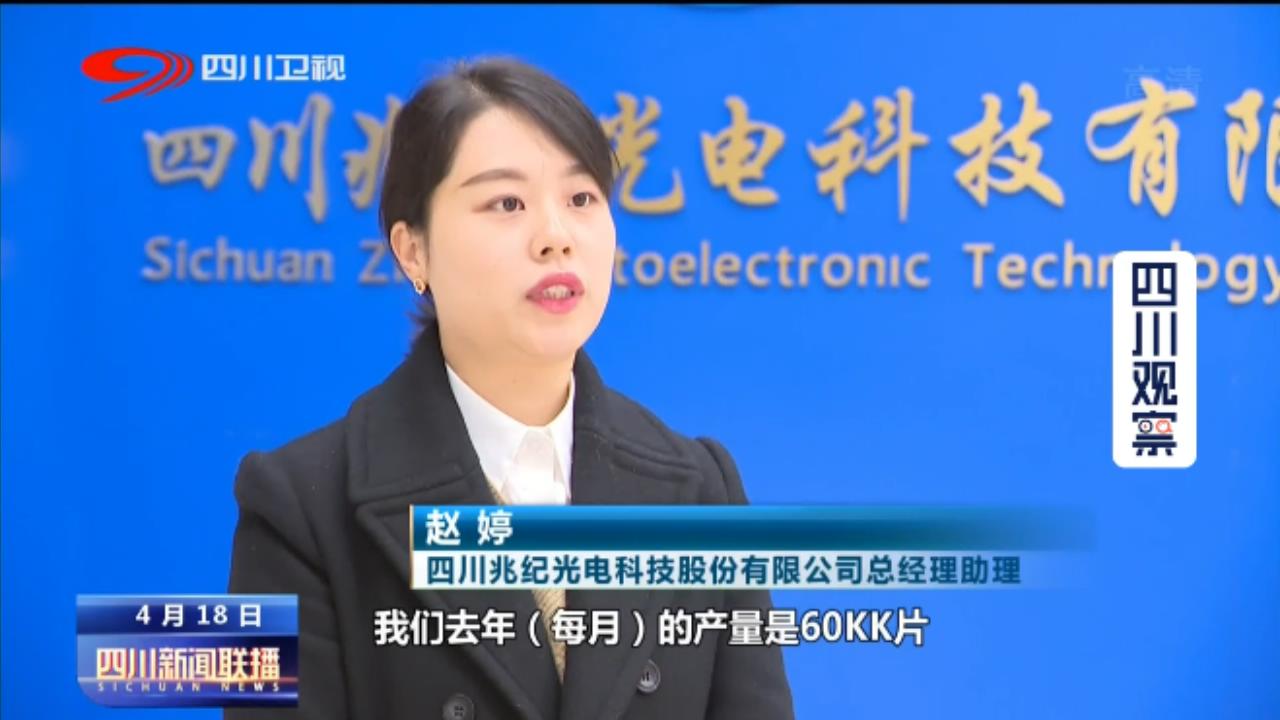 四川兆纪光电科技股份有限公司总经理助理赵婷:我们去年每月的产量是60KK片,今年我们智能化生产加大投入后,每月出货量是120KK片,随之而来,我们的订单也是呈现直线增长的态势,仅一季度达到了1.8亿的产值。