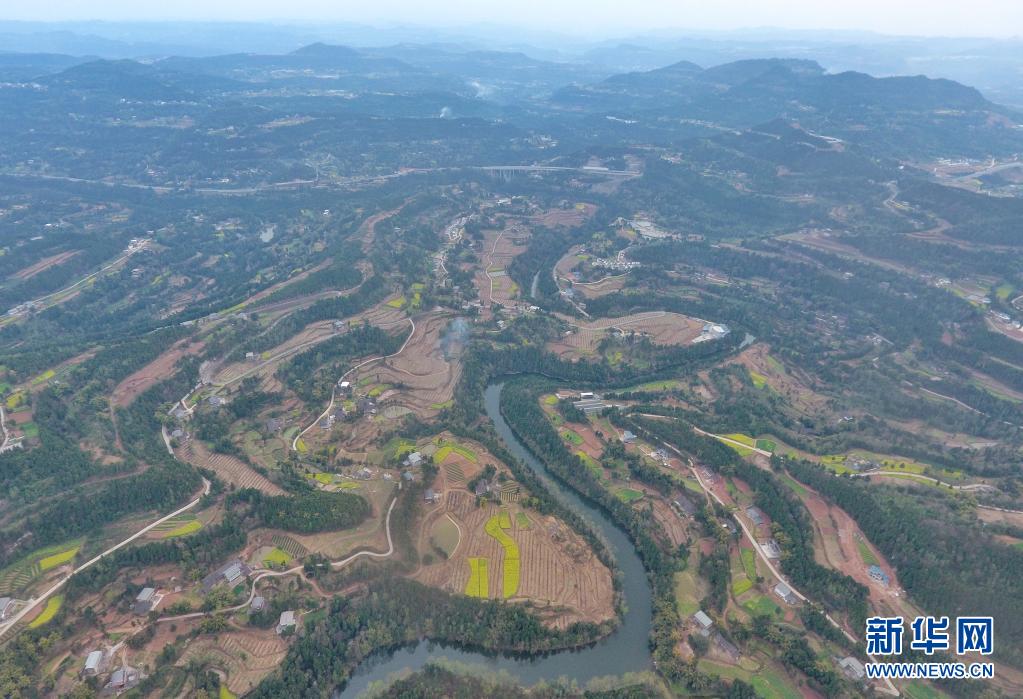 3月2日拍摄的巴中市秦巴山区风光,这里随处可见连片的产业基地(无人机照片)。
