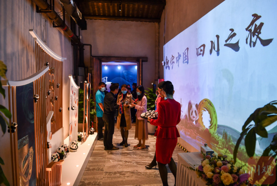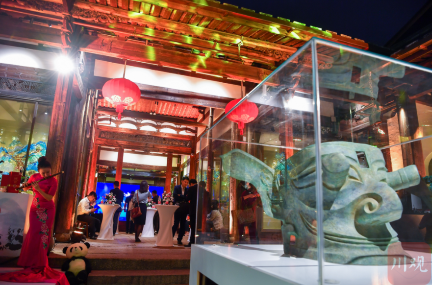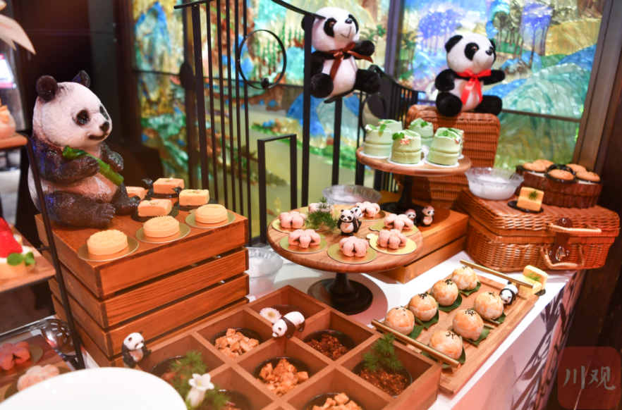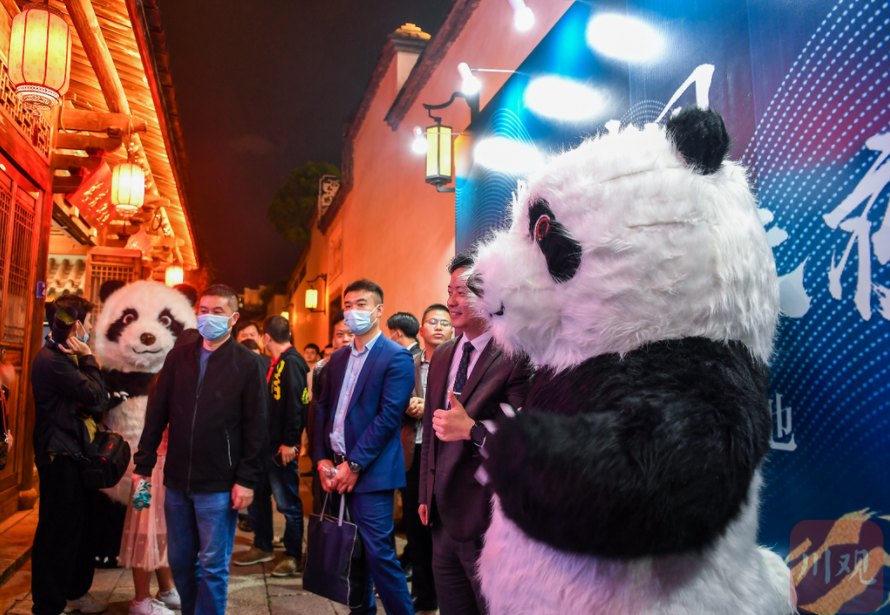 —— 这个颇具盛名的历史文化街区,在这天晚上,有了些许“川味儿”,集萃苑内,软萌可爱的大熊猫公仔、憨态可掬的大熊猫塑像、震撼人心的三星堆青铜面具模型、就连甜点小叉子上都是大熊猫贴纸……