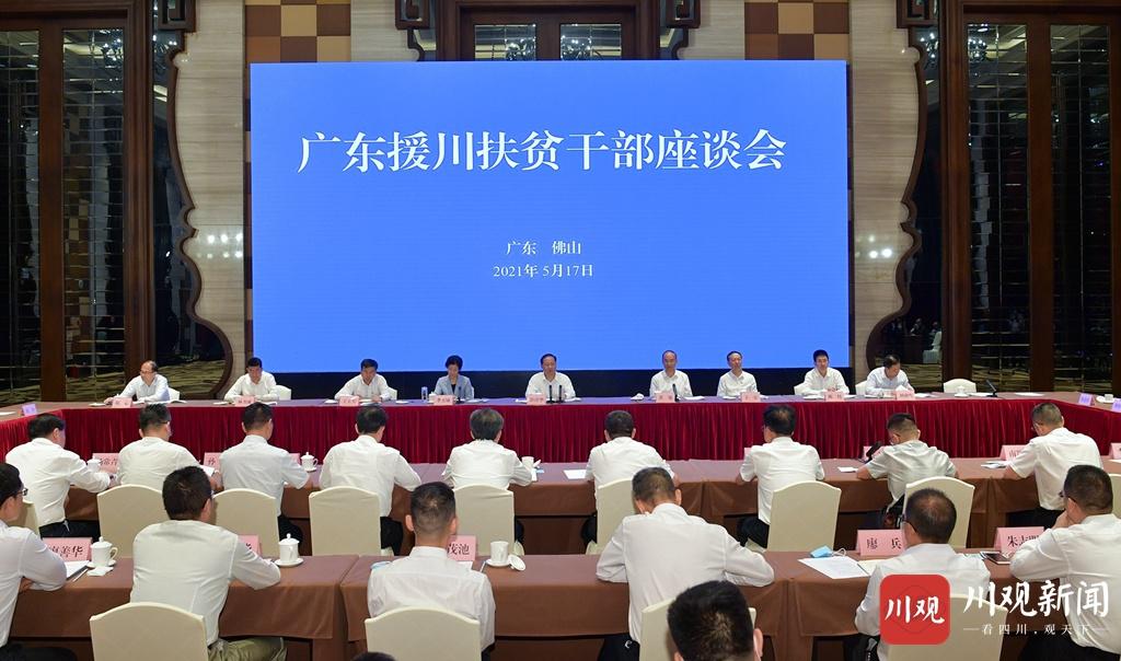 17日下午,广东援川扶贫干部座谈会在佛山市召开,援川扶贫干部、教师、医护人员代表等作交流发言,回首难忘岁月、共话美好未来。