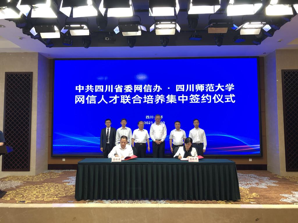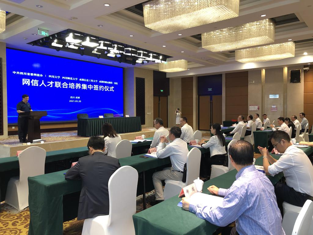 5月20日上午,省委网信办在成都举行集中签约仪式,分别与四川大学、四川师范大学、成都信息工程大学等三所高校签订合作框架协议,省网络治理研究中心、成都铁路运输第一法院(成都互联网法庭)与四川师范大学法学院签订三方合作协议,共同推动网信领域人才培养、学科建设、师资积累、创新研究、学术交流、产教融合等方面的合作。